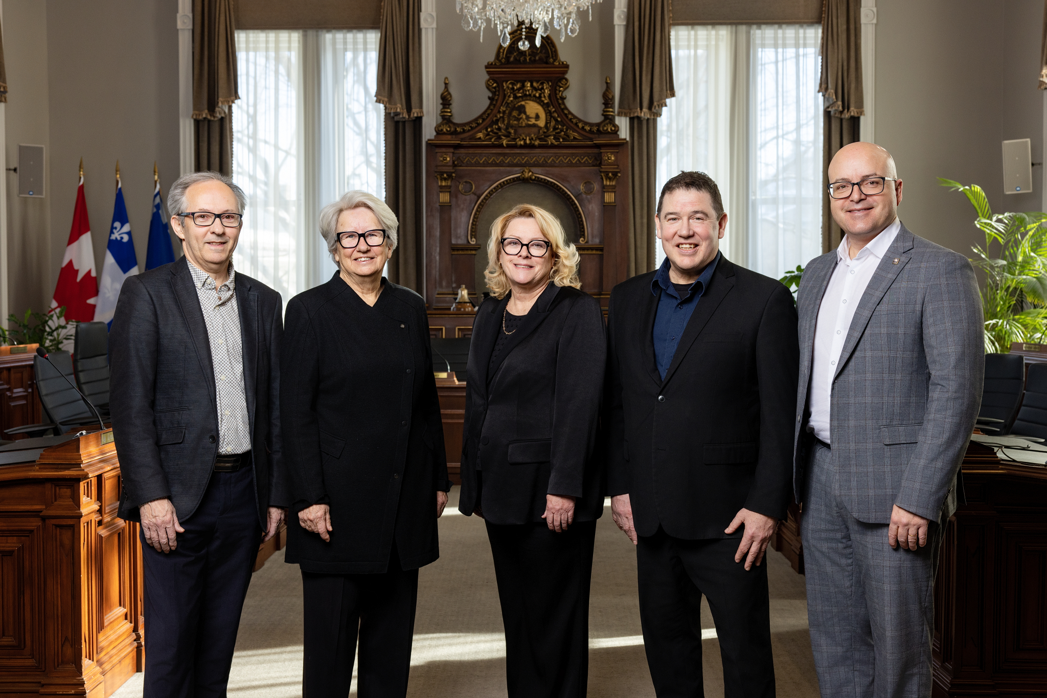Clément Gosselin, professeur titulaire, Département de génie mécanique, Université Laval, directeur du CeRVIM, Agnès Maltais, ex-députée et ministre, Marie-Claude Houle, présidente et cheffe de la direction, EBC inc., Éric Boulay, directeur général, Lauberivière, Frédérik Boisvert, président et chef de la direction de la CCIQ.